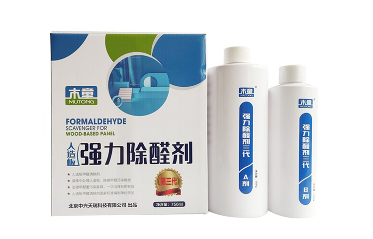 木童強(qiáng)力除醛劑第三代產(chǎn)品是我公司在2002年第一代,2006年第二代的強(qiáng)力除醛劑基礎(chǔ)上,于2013年研發(fā)成功的一款新型高效人造板甲醛清除劑,清除人造板長(zhǎng)期釋放甲醛效率更高、更安全。第三代采用全新的雙組分獨(dú)立包裝,不僅能夠從根源上有效解決人造板脲醛樹脂膠長(zhǎng)期釋放甲醛的污染問題,而且適用范圍更廣泛,人造板裸露面、油漆家具內(nèi)側(cè)皆可使用。不僅適合專業(yè)治理機(jī)構(gòu)使用,也適合消費(fèi)者自助治理室內(nèi)甲醛污染。